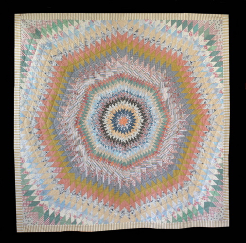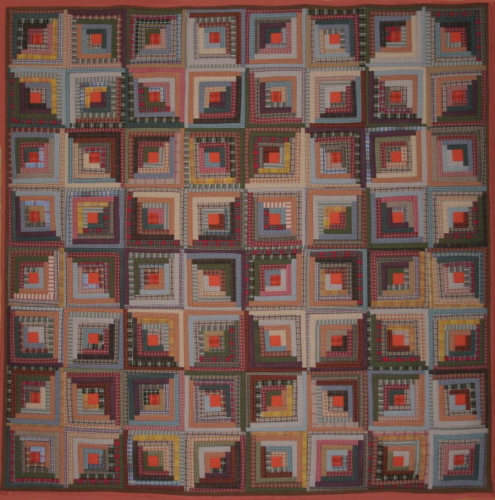 Log Cabin, 186cm x 186cm, Wollfüllung, sehr kuschelig und warm, Eins der ältesten Patchworkmuster überhaupt!genäht aus Karo-und Streifenstoffen
