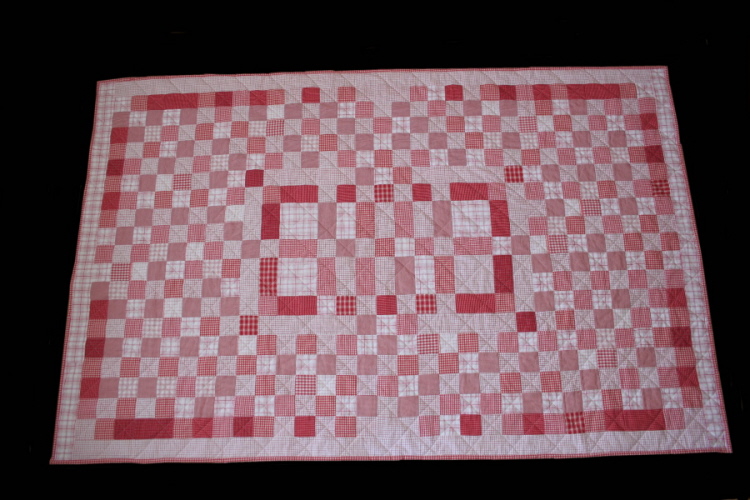 Karodecke in Rot, 138cm x 215cm, zum größten Teil aus alten Wäschestücken gearbeitet