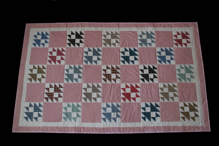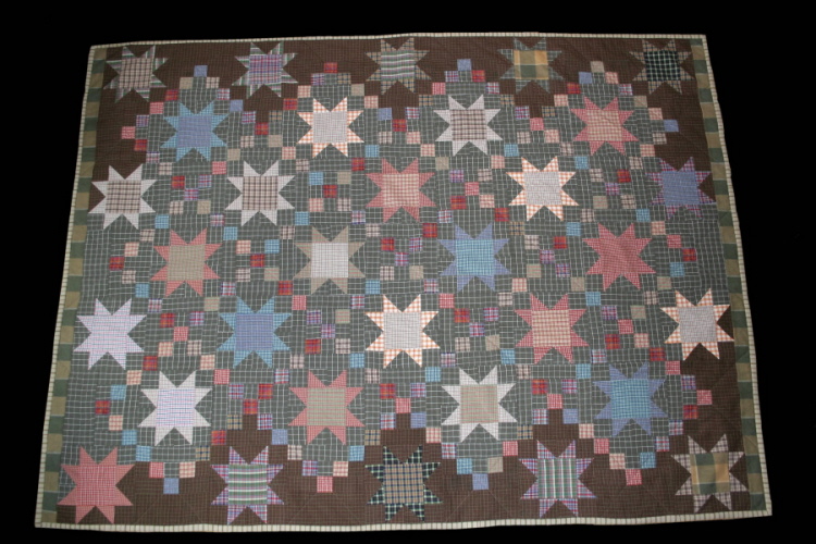 Civil War Quilt, Tagesdecke 138cm x 199cm, Reproduktion nach einer Anleitung von Judie Rothermel. Sowohl das Muster als auch die Stoffe (Reprints) stammen aus der Civil War Period (1850-1865).