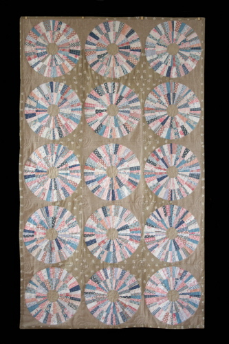 Morgenkreise, Tagesdecke 125cm x 210cm, Restequilt aus alten Wäschestoffen